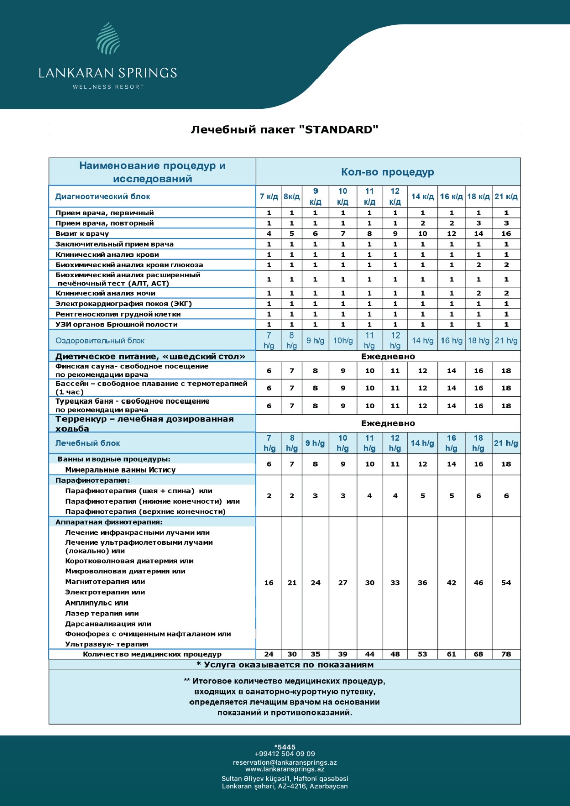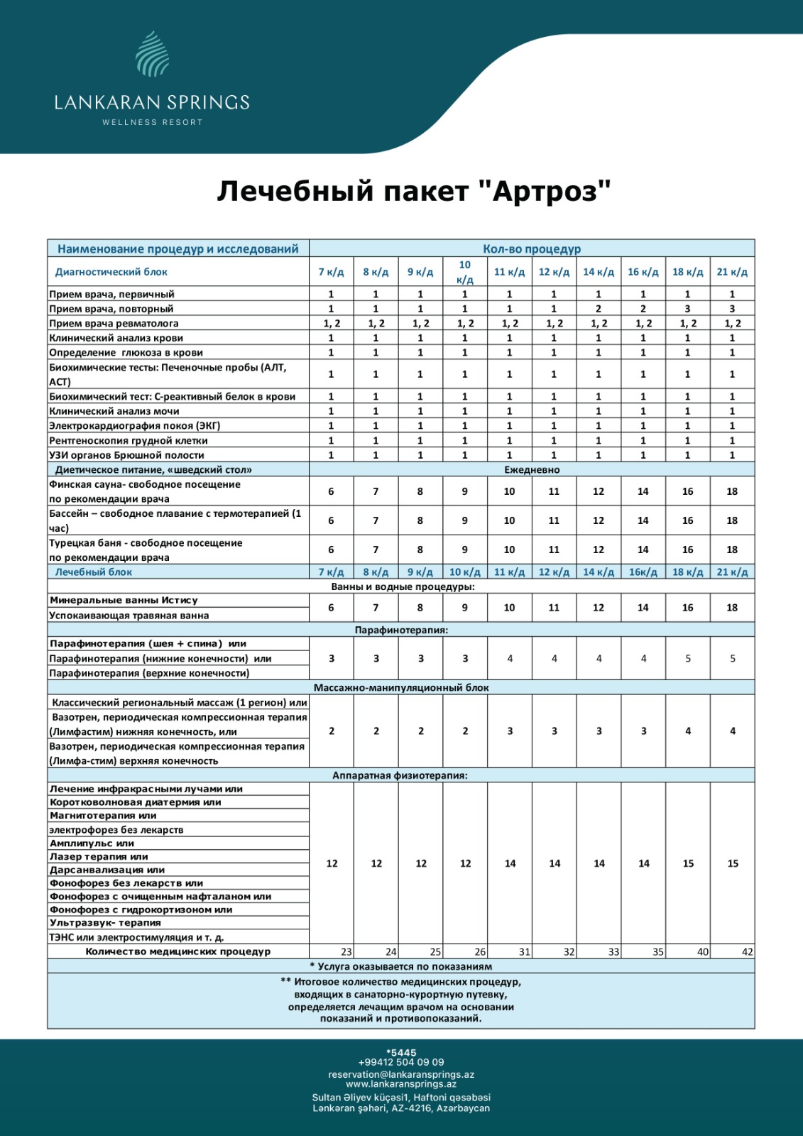 Тамақтану: BB | Artroz package | Standard package | Premium package