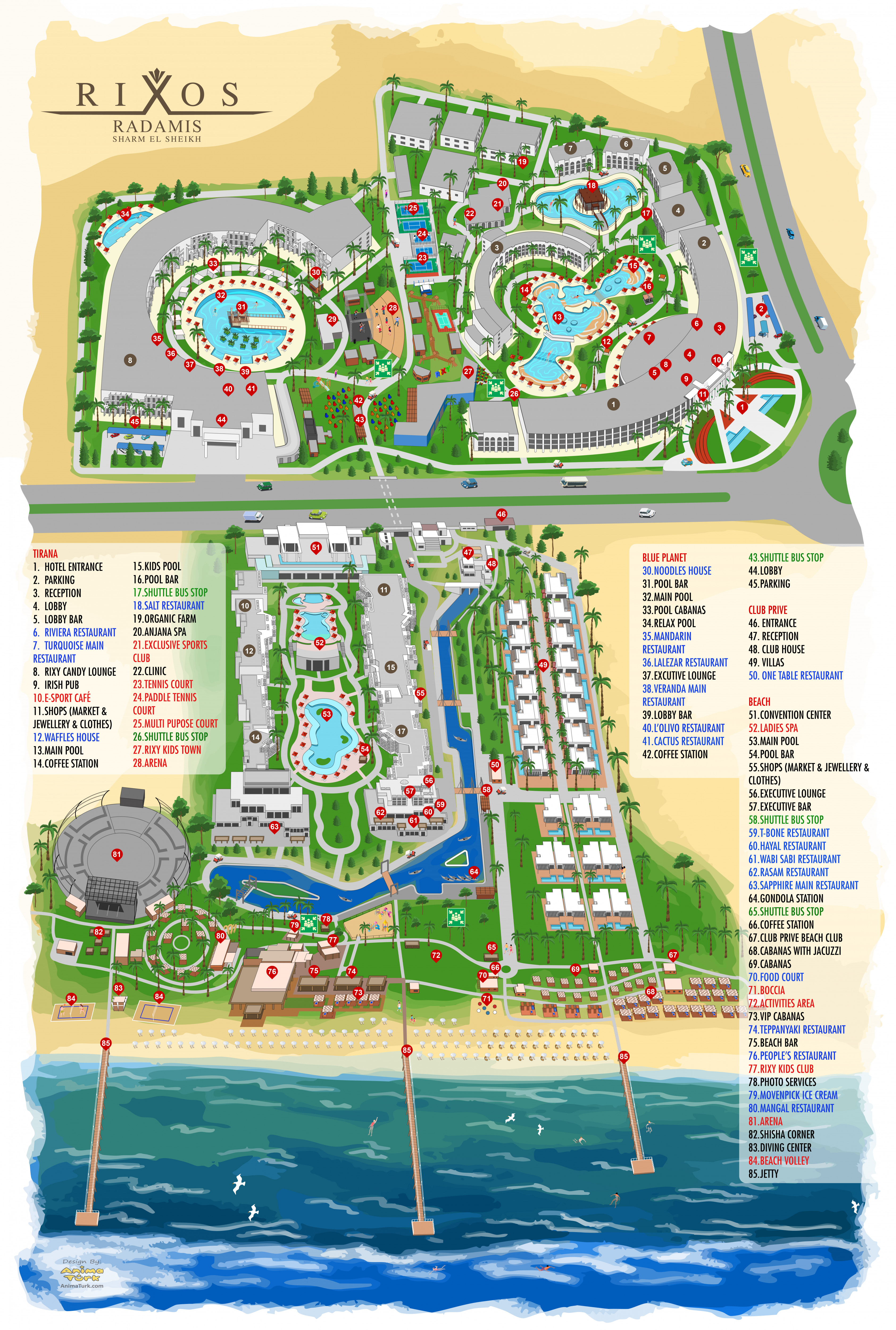 Новый отель для семейного отдыха Rixos Radamis Sharm El Sheikh который делиться на три зоны на Tirana (фото 1-79), Blue Planet (фото 80-117) и Radamis Beach — это самый захватывающий водный рай с идеально спроектированными и красочными номерами, где вы найдете широкий спектр возможностей для приятного времяпрепровождения всей семьи. Станьте частью идеального отдыха с семейной концепцией, которая включает спортивные кафе, игровые комнаты, детский клуб, эксклюзивные кулинарные изыски и множество исключительных удобств для детей. Прекрасный пляж, вкусная еда с высококачественным обслуживанием, рестораны с роскошными шведскими столами, бассейны, Rixy Kids Town исключительно для детей и живые развлечения — все это ждет вас в идеальном отпуске.