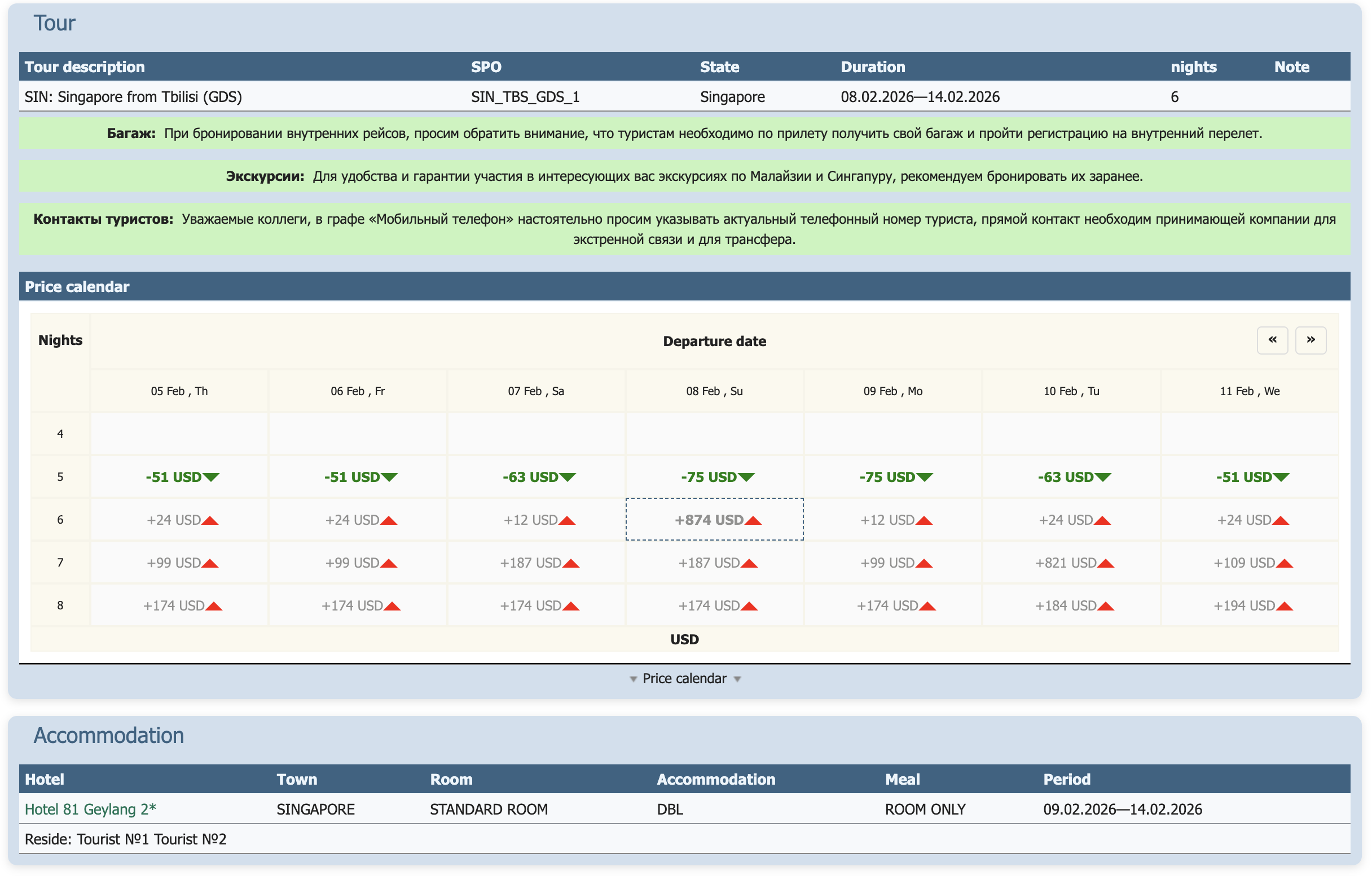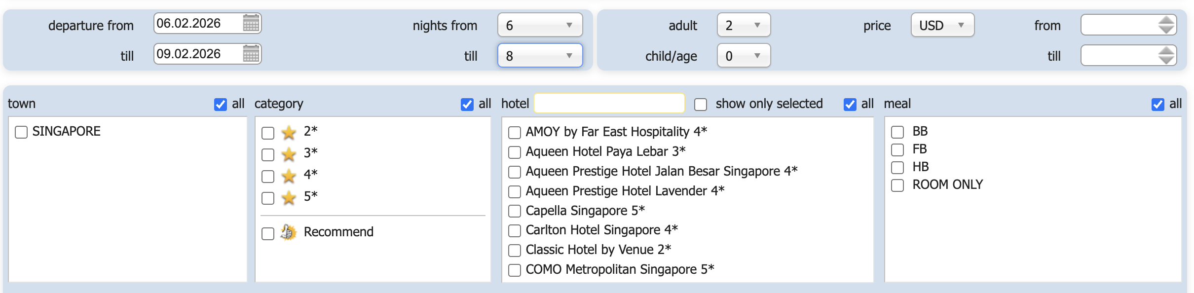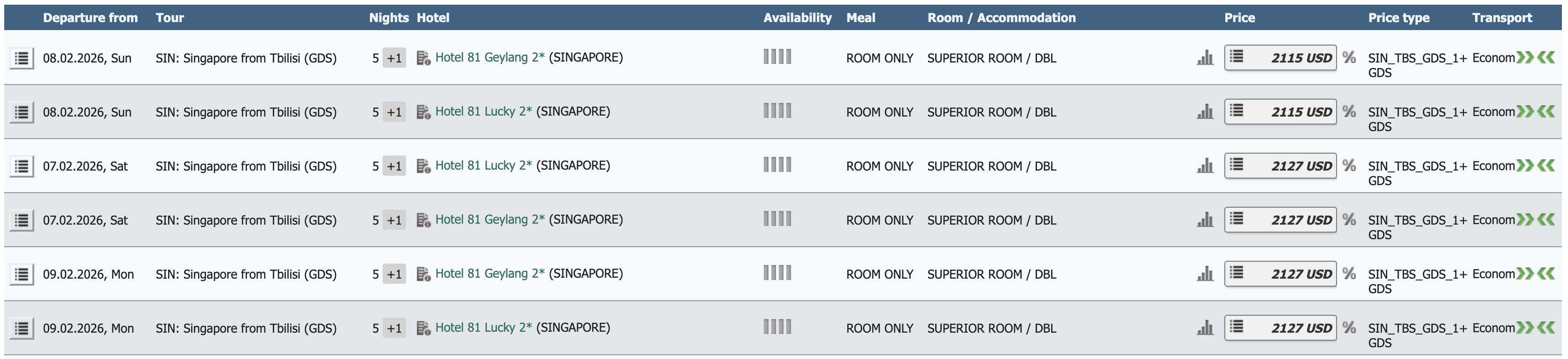 Please note that the tour price is not final, as it depends on the selected flight and may change at the next stage of flight selection. To proceed to the flight selection stage, click on the price of the selected tour.