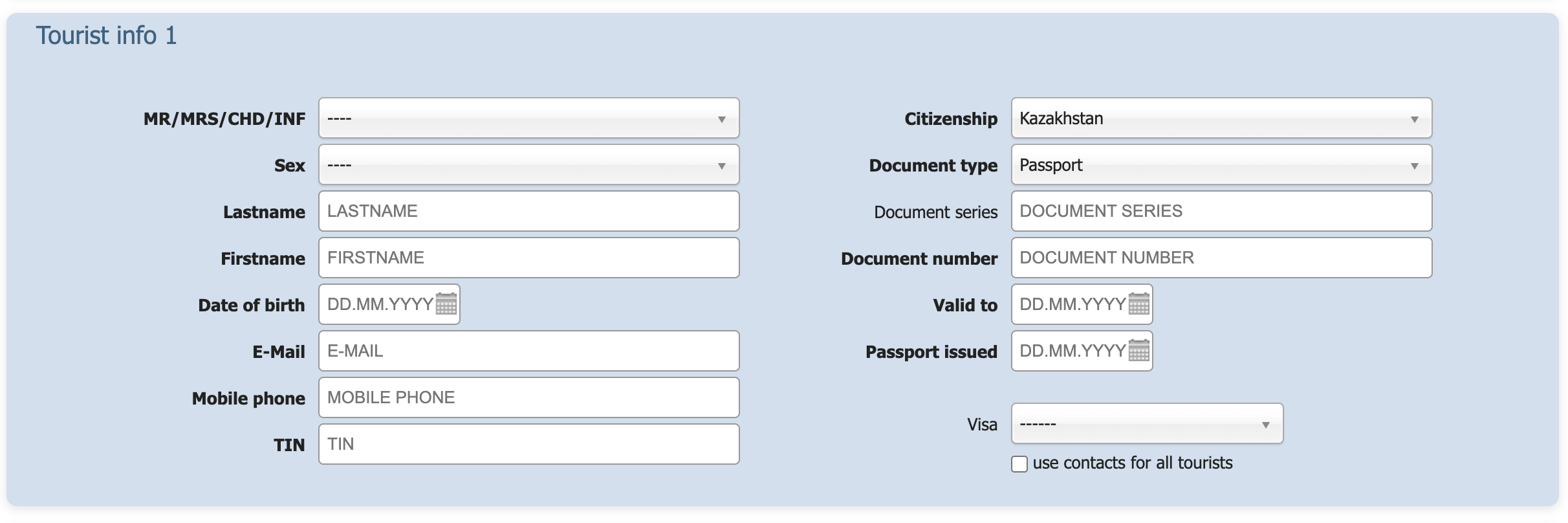 4. Enter the login and password provided to you at the time of signing the contract for online tour booking: