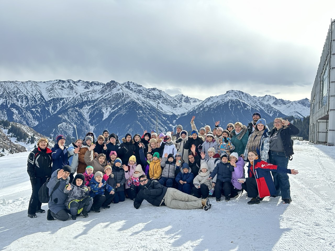 Голубое небо, снежные вершины, чистый горный воздух, смех и восторг наполнили этот день. Детвора с удовольствием валялась в снегу, взрослые фотографировались на память и наслаждались моментом.