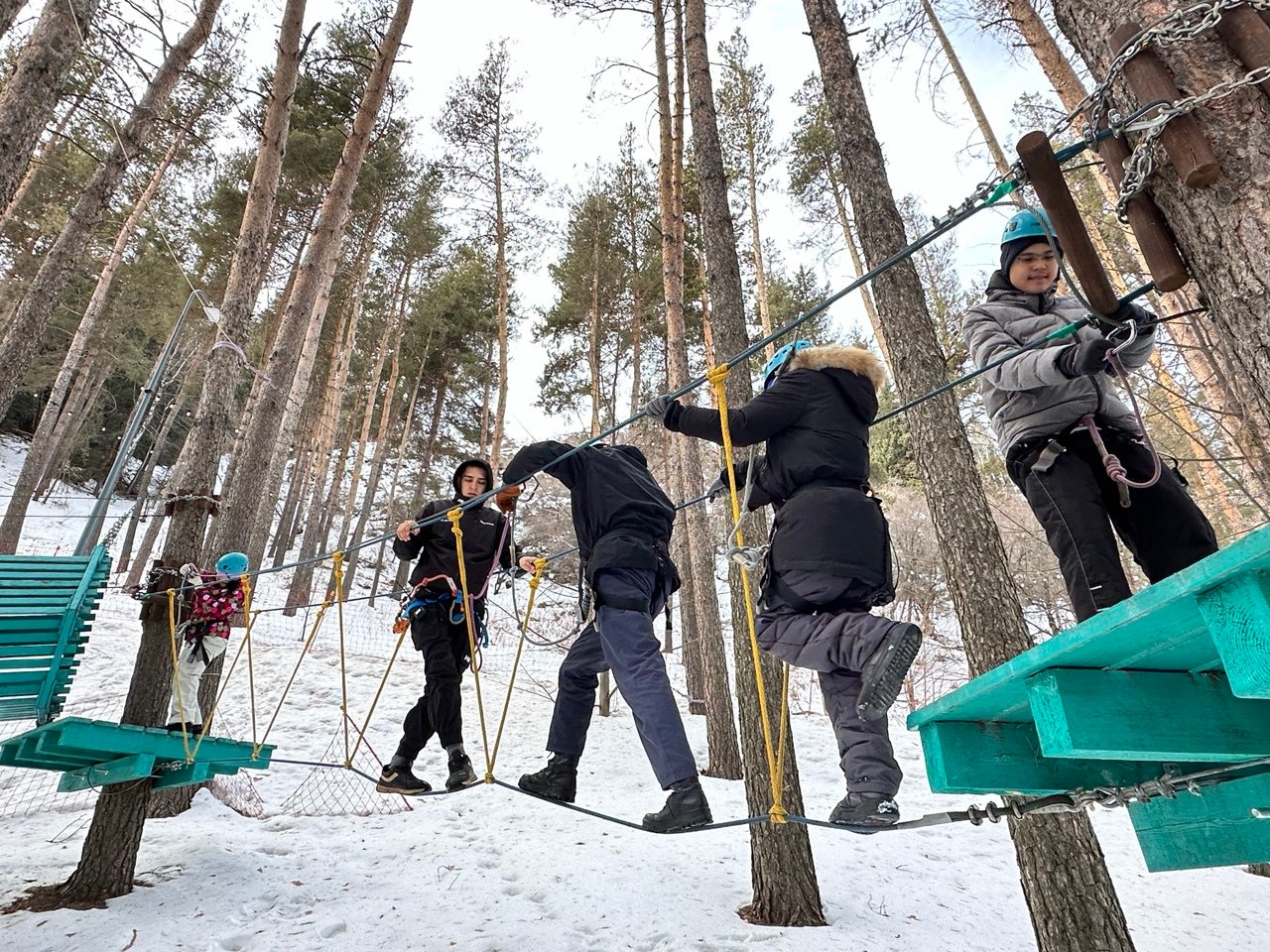 После прогулки в горах участники отправились в детский центр Ugusha. Здесь ребята постарше прошли маршруты веревочного парка, преодолевая страхи и сомнения, а малыши играли на детской площадке. Не всем легко дался путь, но никто не сдался.
