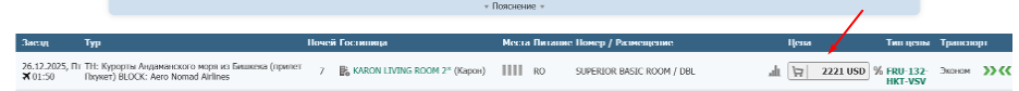 1. В подборе тура выбираем нужный тур и переходим в «Корзину услуг».