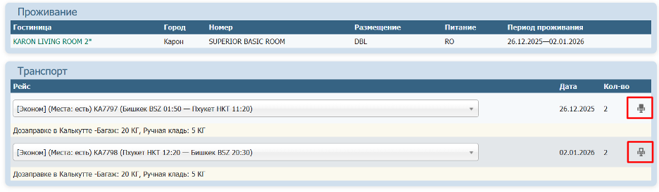 2. В корзине спускаемся к графе «Транспорт». Там обозначены «Рейсы». Напротив «Рейса» кликаем мышкой на значок «Кресла».