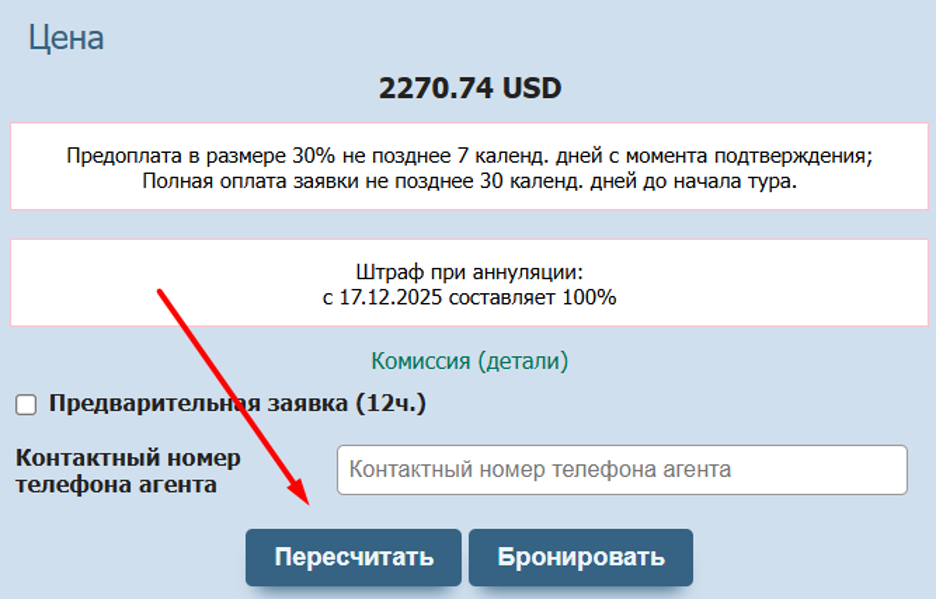 5. После выбора мест нужно нажать кнопку «Пересчитать».
