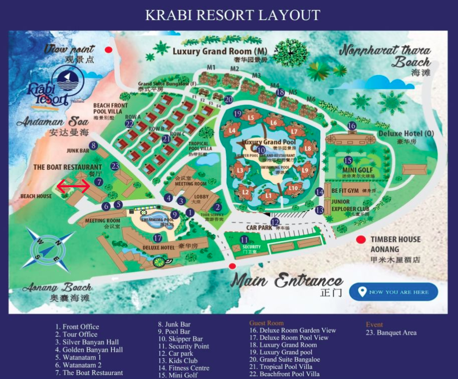 Krabi Resort расположен на великолепном пляже Ао Нанг и является единственным курортом в Ао Нанге, имеющим частную пляжную зону. Курорт Краби расположен среди пышной растительности кокосовых пальм с захватывающим видом на Андаманское море. Пляж Ао Нанг — самый популярный пляж в Краби, с нетронутым пляжем и интересным множеством магазинов, ресторанов и баров.