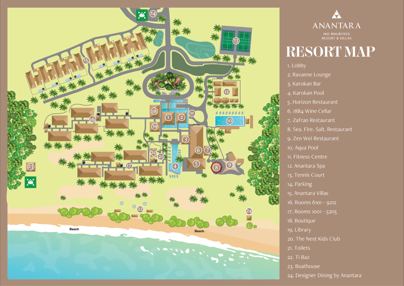 Оңтүстік-шығыс жағалауындағы Blue Bay Lagoon әлі күнге дейін бай су асты өмірі мен қардай аппақ жағажайлары бар көркем табиғаттың қол тимеген бұрышы болып табылады. Дәл осы жерде, Blue Bay теңіз саябағының аумағында, Anantara Iko Mauritius Resort & Villas орналасқан. Курорттың дизайны шынайы аралдық елді мекендерден шабыттандырылған: Үнді мұхитының жағасындағы осы тропикалық жерде сіздің сыртқы әлеммен үйлесімділігіңізді ештеңе бұза алмайды.