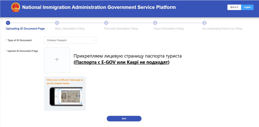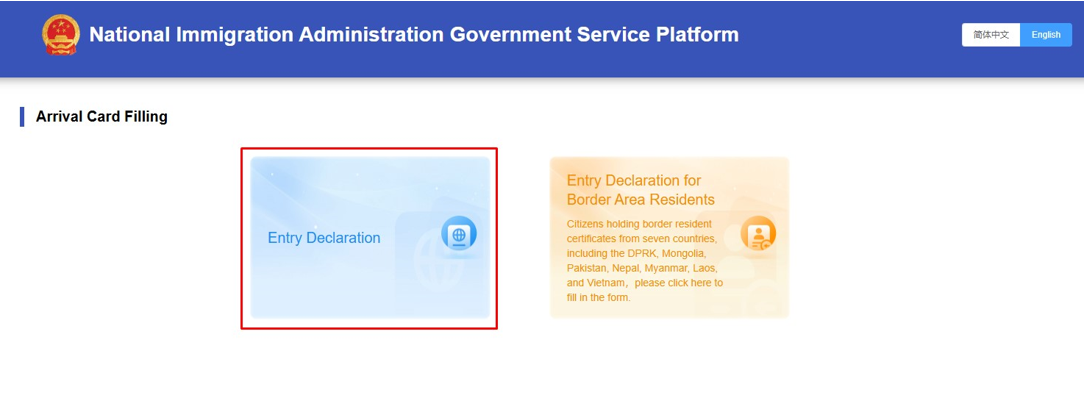 ШАГ 1. ПРОЙДИТЕ ПО ССЫЛКЕ https://s.nia.gov.cn/Arrival