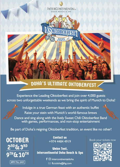 Готель InterContinental Doha Beach & Spa, розташований на найдовшому пляжі Дохи, оточений ландшафтними садами, має 14 ресторанів і барів, включаючи знаменитий La Mar by Gaston Acurio, різні розважальні заклади, басейн вільної форми і ексклюзивний спа-центр Spa InterContinental. Готель розташований в декількох хвилинах від району Лусаїл, центру Дохи, виставкового та конференц-центру Дохи, торгового центру City Center і гольф-клубу Doha.
